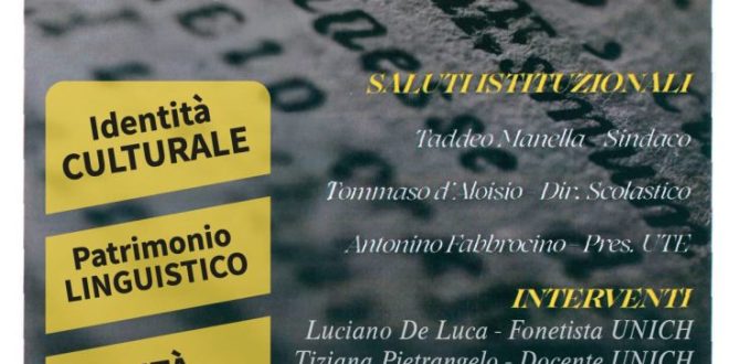 Sabato 18 Ottobre, ore 10,00, a Pianella, presso la Sala Consiliare, si svolgerà il Convegno: Rassegna dei dialetti abruzzesi, prospettive future. Interverranno il prof. Luciano de Luca (Unich): Gli Organi di fonazione e la formazione delle lingue; la prof. Tiziana Pietrangelo (Unich), II viaggio del gusto attraverso il ricettario della …