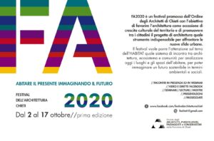 In occasione del quarantennale della nascita e nell’ambito delle attività dell’Ordine degli Architetti Pianificatori Paesaggisti e Conservatori della Provincia di Chieti, il Consiglio dell’Ordine, tramite la Commissione Cultura, ha inteso promuovere e organizzare il Festival dell’Architettura FA2020 – Abitare il Presente immaginando il Futuro.