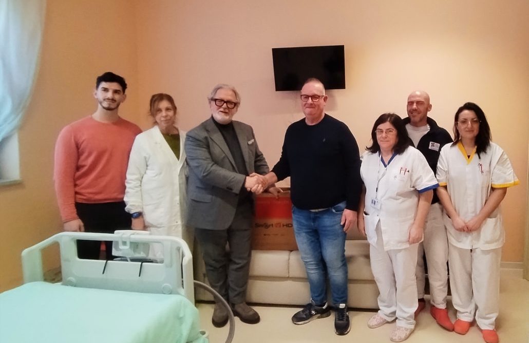 La ditta Lafer Srl di Casemolino ha donato otto televisori all’Unità operativa complessa Hospice e Cure Palliative della ASL di Teramo. La consegna è avvenuta nel corso di una cerimonia informale in reparto, alla presenza del direttore generale Maurizio Di Giosia, del titolare Livio Di Clemente con il figlio Cristian, della direttrice Franca Di Renzo e del personale sanitario.
