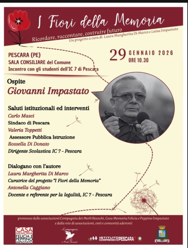 “””In data 29 gennaio 2026, presso l’aula consiliare del Comune di Pescara, gli alunni delle classi terze della scuola media Luigi Antonelli di Pescara incontreranno Giovanni Impastato.