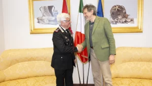 Il presidente della Regione, Marco Marsilio, ha incontrato all’Aquila, nella sede di Palazzo Silone, il Comandante Interregionale Carabinieri “Ogaden”, Generale Massimo Nicola Masciulli, accompagnato dal Generale di Brigata, Gianluca Feroce, comandante della Legione Carabinieri Abruzzo e Molise. Masciulli, Generale di Corpo d’Armata dal 1 gennaio 2025, è originario di Vasto. Al centro del colloquio i temi della sicurezza e della collaborazione istituzionale sul territorio.