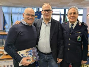 Alla presentazione sono intervenuti il sindaco Ottavio De Martinis, il presidente del Consiglio comunale Valter Cozzi, l’assessore alla Viabilità e Polizia locale Lino Ruggero, l’assessore ai Grandi eventi Corinna Sandias, il comandante della Polizia Locale Nicolino Casale, il disegnatore Marco D’Agostino e una rappresentanza di agenti del Corpo.