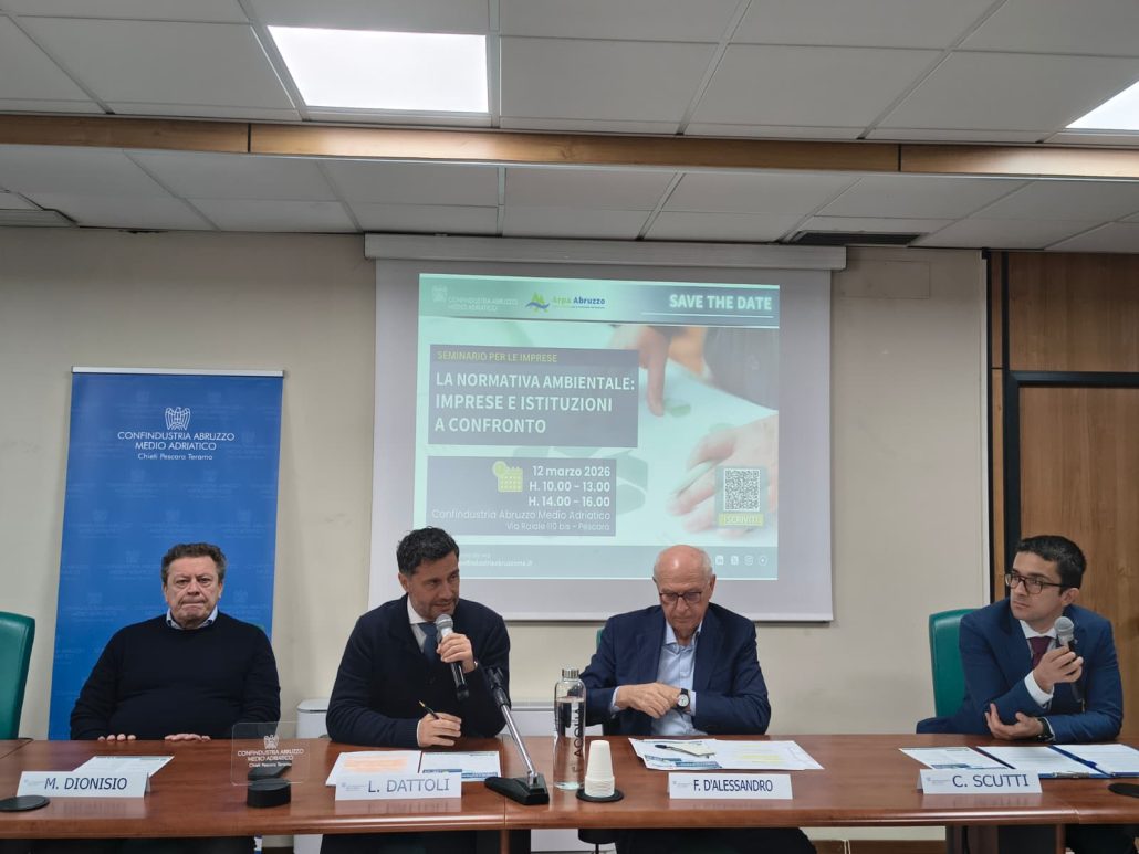 La Sezione Ambiente di Confindustria Abruzzo Medio Adriatico, in collaborazione con ARPA Abruzzo, organizza l’evento “La normativa ambientale: Imprese e Istituzioni a confronto”, in programma il 12 marzo 2026 dalle 10 alle 13 e dalle 14 alle 16 nella sede di Confindustria Abruzzo Medio Adriatico a Pescara. L’iniziativa punta a rafforzare il dialogo tra il sistema imprenditoriale e le istituzioni che operano nel settore ambientale, offrendo un momento di approfondimento sulle principali autorizzazioni ambientali e sugli adempimenti previsti dalla normativa.