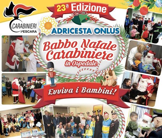 Si svolgerà mercoledì 17 dicembre la 23ª edizione di “Babbo Natale carabiniere in Ospedale”, iniziativa promossa da ADRICESTA all’Ospedale Civile di Pescara. L’incontro è fissato alle ore 10:00 nella sede dell’associazione, situata nell’atrio Degenti–Accettazione. Dopo le foto di rito, la delegazione si sposterà nei reparti pediatrici per la consegna dei doni ai piccoli pazienti ricoverati da Babbo Natale.