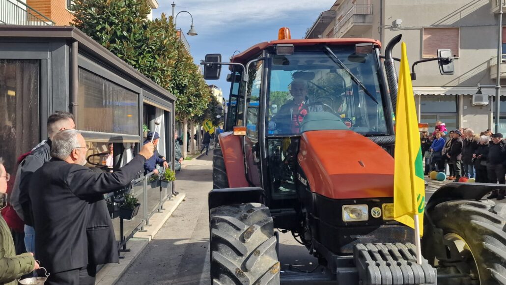 Nel centro storico di Giulianova i trattori sono arrivati dalle 8.30 per sistemarsi ordinatamente nel piazzale Campo delle Fiere (zona stadio) e sfilare lungo tutto il centro storico tra bandiere e cappelli gialli. A seguire, si è svolta nel santuario Madonna dello Splendore, la Santa Messa con Don Paolo Di Mattia, Direttore dell’Ufficio diocesano per la Pastorale sociale e del lavoro, che ha ricordato il forte legame tra agricoltore e dottrina cristiana.