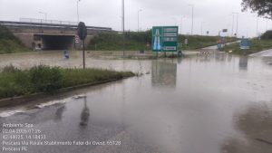 La diga di Alanno ha comunicato che proseguono le operazioni di sversamento controllare e il fiume Pescara ha ormai invaso completamente la golena nord, chiusa da ieri mattina insieme a quella sud. E’ stato chiuso anche il secondo sottopasso di via Raiale (tra il depuratore e la Fater). Ieri pomeriggio, invece, era stato già vietato il transito nel sottopasso che si trova nella zona della Fater e conduce verso il porto, perché era inaccessibile a causa dell’acqua.