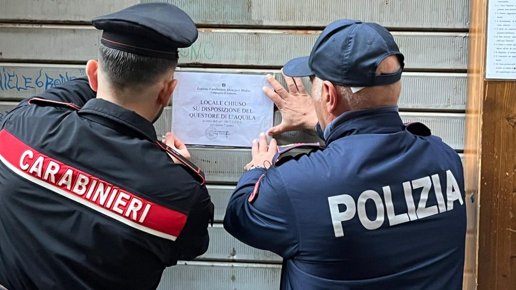 La Polizia di Stato di L’Aquila su proposta del Comandante della Compagnia dei Carabinieri di Sulmona ha adottato nei confronti di un locale l’art. 100 del Testo Unico delle Leggi di Pubblica Sicurezza, che prevede la sospensione temporanea della licenza in caso di accertate violazioni.