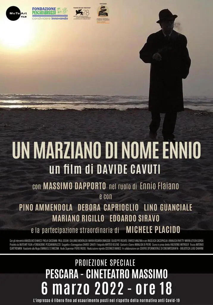 «Un marziano di nome Ennio» di Davide Cavuti, sbarca al cinema con una proiezione speciale domenica 6 marzo alle ore 18, al «Cineteatro Massimo» di Pescara, ad ingresso libero fino ad esaurimento posti, nel rispetto della normativa anti Covid-19.