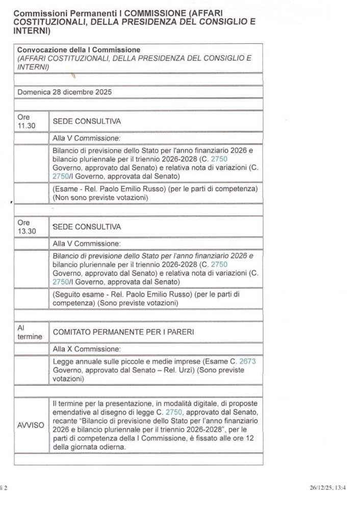 Cari ragazzi, per evitare l’esercizio provvisorio, la Camera dei Deputati dovrà approvare, e approverà, tra obbedienza obbligata della maggioranza e doglianze folcloristicamente espresse, per la gioia di editorialisti e moralisti censori, entro il 30 dicembre 2025 la legge di bilancio, la Finanziaria 2026.
