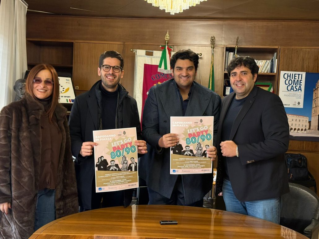 Presentata la serata di Capodanno in piazza San Giustino, appuntamento che per il secondo anno consecutivo riporta a Chieti un evento pubblico di richiamo, con una proposta a tema anni ’80 e ’90 pensata come festa popolare, inclusiva e intergenerazionale. Il programma prevede musica dal vivo, comicità e ospiti, con la direzione artistica e la conduzione affidate a Federico Perrotta insieme a Valentina Olla, e la partecipazione di Matilde Brandi, Piero Mazzocchetti e Claudio Lauretta. Dopo la mezzanotte è previsto il DJ set con DJ Heinz e animazione.