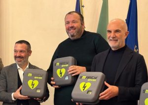 Pescara compie un nuovo passo nel percorso verso una maggiore cardioprotezione del territorio grazie alla donazione di dieci defibrillatori da parte dell’imprenditore Luca Cardano. La consegna è avvenuta a Palazzo di Città, alla presenza del sindaco Carlo Masci, dell’assessore Patrizia Martelli, del presidente del Consiglio regionale Lorenzo Sospiri e del dottor Stefano Guarracini, primario della clinica Pierangeli.