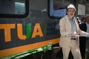 Marsilio ha inoltre ricordato che i 90 milioni programmati sul Fondo sviluppo e coesione per il sistema ferroviario stanno entrando nella fase operativa, con cantieri già avviati, tra cui quello tra Fossacesia e il polo logistico di Saletti. «Nei prossimi giorni presenteremo nel dettaglio gli interventi, dimostrando che circa un terzo delle risorse è già impegnato tra contratti attivi e lavori in corso», ha aggiunto. I quattro nuovi elettrotreni sono stati intitolati a Sergio Marchionne, Elena Sangro, Filomena Delli Castelli e Piero Di Pietro, ex dipendente TUA scomparso nella tragedia di Rigopiano.