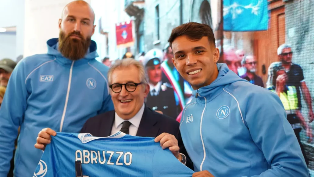 I due giocatori hanno partecipato alla cerimonia di premiazione dei sei vincitori del contest promosso dalla Regione Abruzzo, consegnando gadget ufficiali del Napoli autografati. L’iniziativa ha richiamato numerosi visitatori, tifosi e curiosi attorno allo stand abruzzese.