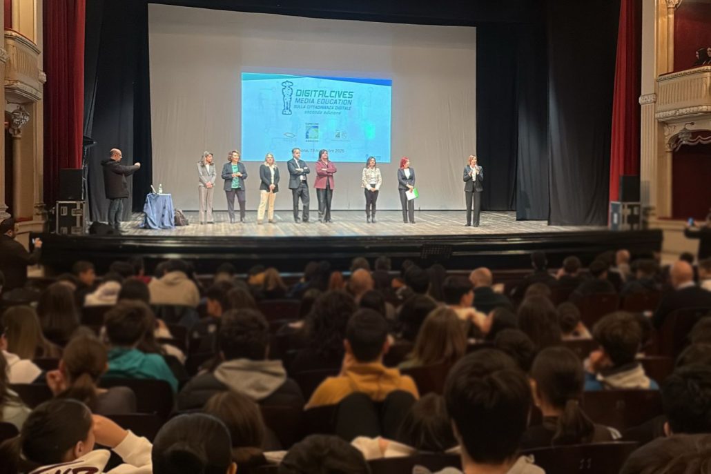 Circa mille studenti hanno partecipato al Teatro Maria Caniglia di Sulmona all’incontro “DigitalCives”, iniziativa regionale del Corecom Abruzzo dedicata alla media education. L’evento ha visto l’intervento del divulgatore scientifico Giammaria De Paulis, incaricato dal Corecom alla gestione del programma, che ha invitato i giovani a un uso responsabile degli strumenti digitali, sottolineando il ruolo attivo di ciascuno nella costruzione di un ambiente online più consapevole.