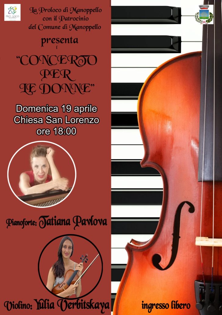 La Pro Loco Manoppello presenta un evento musicale di grande prestigio: il “Concerto per le Donne”, in programma domenica 19 aprile 2026 alle ore 18:00 nella suggestiva Chiesa di San Lorenzo. Una serata dedicata all’eccellenza artistica al femminile, con un programma raffinato e interpreti di livello internazionale.