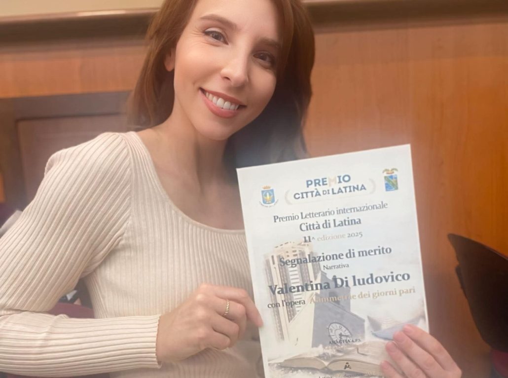 Si è conclusa a Latina l’undicesima edizione del Premio Letterario Internazionale “Città di Latina”, che nella serata del 6 dicembre ha assegnato una segnalazione di merito per la sezione Narrativa a Valentina Di Ludovico, autrice originaria di Teramo. Il riconoscimento è stato attribuito per il romanzo Asimmetrie dei giorni pari, giudicato dalla commissione meritevole di particolare attenzione per qualità e profondità della narrazione.