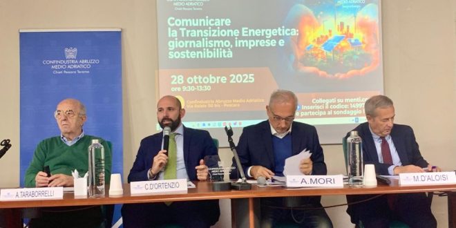 Nella sede di Confindustria Abruzzo Medio Adriatico a Pescara si è svolto il corso di formazione “Comunicare la Transizione Energetica: giornalismo, imprese e sostenibilità”, promosso dalla Sezione Energia di Confindustria Abruzzo Medio Adriatico e da Confindustria Energia, in collaborazione con l’Ordine dei Giornalisti d’Abruzzo, il CERVAS – Centro di Ricerca …