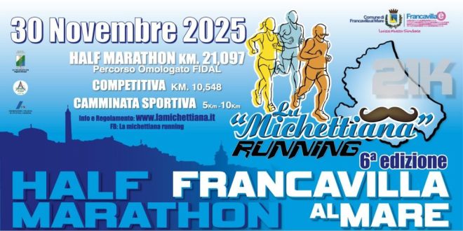 Francavilla al Mare ospiterà domenica 30 novembre la sesta edizione della Michettiana Running, manifestazione patrocinata dal Comune e dalla Regione Abruzzo e organizzata sotto l’egida della Fidal. L’evento assume la nuova denominazione Half Marathon Francavilla al Mare – La Michettiana Running e si presenta con un percorso ufficialmente omologato dalla …